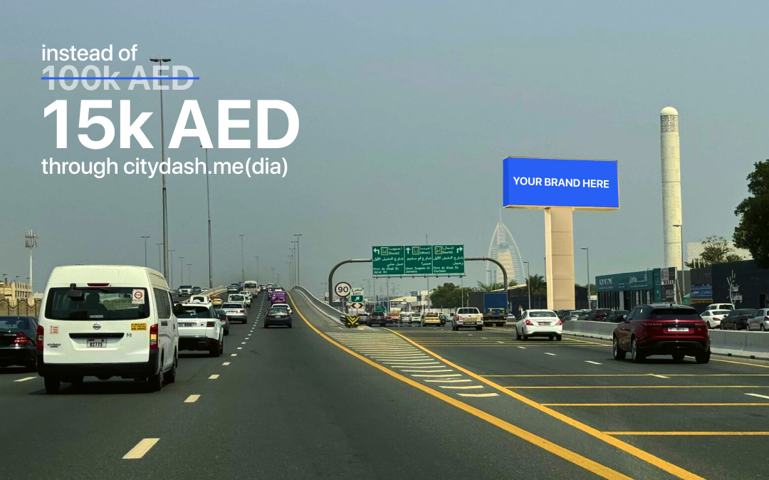 Billboards across Dubai you see everyday, but cheaper 5-10x times through citydash media